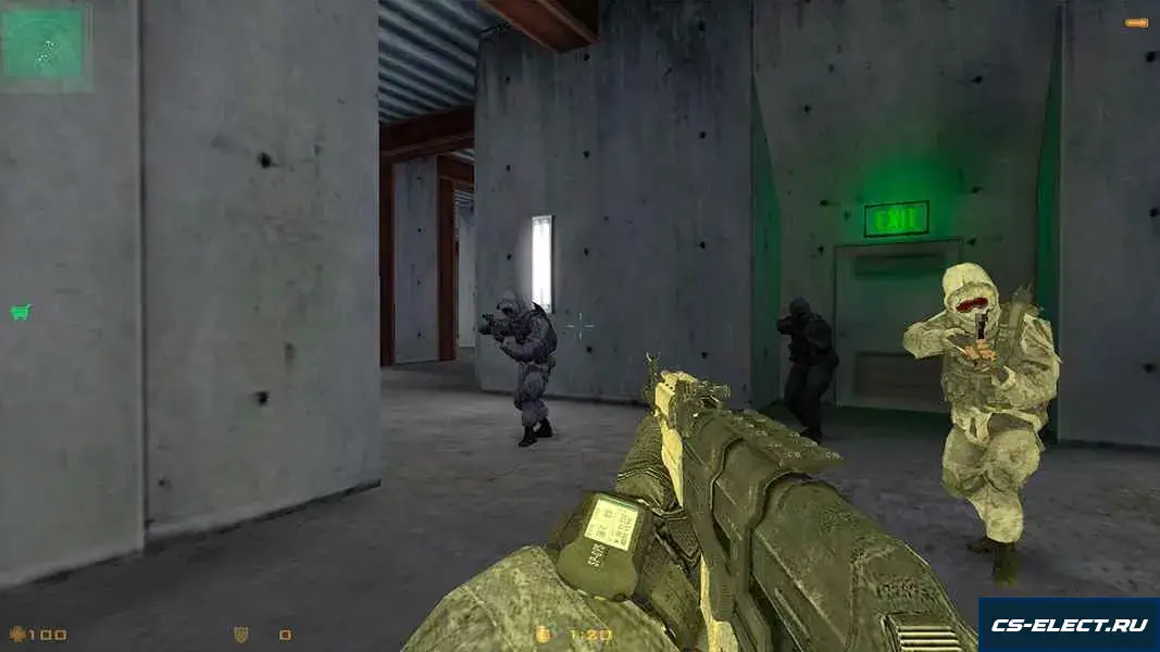 Персонажи тоже изменились: террористы и спецназ заменены на бойцов в современной экипировке — разгрузках, шлемах, перчатках. Их движения остались прежними, но визуально они принадлежат другому миру — миру, где каждый раунд напоминает операцию из Spec Ops.