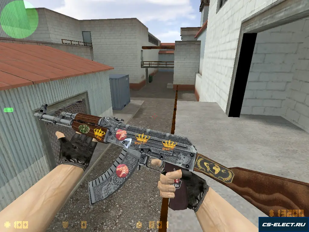 Модель АК-47 «Картель с наклейками» для CS 1.6 — дерзкая, статусная переработка автомата, где каждая деталь говорит о власти, богатстве и безнаказанности: корпус выполнен в глубоком чёрно-золотом оттенке с матовой основой, имитирующей кожу роскошного чемодана. На цевье и прикладе — множество тактических и криминальных наклеек: золотой скорпион, девизы вроде «PLATA O PLOMO», логотипы вымышленных брендов, QR-коды и даже фальшивые сертификаты подлинности — всё это создаёт эффект «живого» оружия, которое прошло через десятки рук и операций.