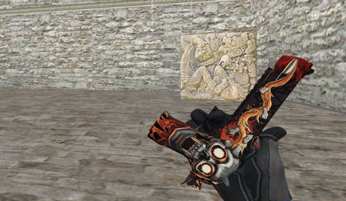 Представляем вашему вниманию темный матовый дигл с анимацией осмотра оружия из КС ГО с нанесением текстуры пламени в HD качестве. В архиве есть и звуки выстрелов и перезарядки.