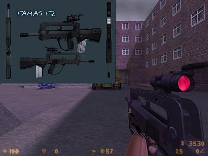 Скин famasf_v2 — чистая тактическая переработка без излишеств: корпус окрашен в матовый тёмно-серый с едва заметным цифровым узором под городскую среду, цевьё оснащено короткой верхней планкой Пикатинни и резиновой накладкой для хвата. Приклад сохраняет оригинальную форму, но перекрашен в чёрный композит без бликов, а дульный тормоз заменён на цилиндрический компенсатор с тремя продольными пазами. Нет глушителя, нет оптики, нет камуфляжа — только лаконичная боевая функциональность. В Контре эта модель выглядит как оружие профессионала, который не нуждается в демонстрации — только в точности, скорости и молчании.