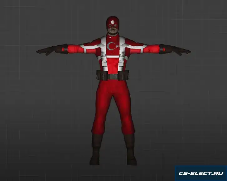 Модель «Капитан Турция» для КС 1.6 — яркая, сатирическая замена стандартному террористу, выполненная в духе национального мема: персонаж облачён в стилизованную форму, сочетающую элементы военной формы и традиционной турецкой одежды — красная феска с кисточкой, золотые галуны на чёрном мундире, широкий пояс с подвешенным кинжалом и пышные шаровары, заправленные в высокие сапоги. Лицо выражает решимость, усы — идеально закрученные, брови — приподняты, будто готов к дипломатической или огневой ставке.